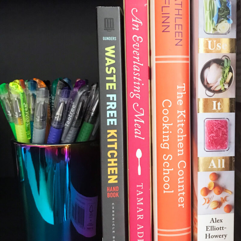 I use my vegetable scraps & make my own chicken broth and veggie broth from scraps I would normally have thrown away. I freeze chicken carcasses and simmer everything together when I have enough discards in the freezer. I freeze it into muffin tins to toss in noodle/rice dishes & quart containers to use in soups or stews etc. *I find I waste very little. I also have a vitamix blender that makes short work of fruits and vegetables that might not get used in a timely fashion. They go into smoothies, and sauces. I also keep a well stocked pantry. I’ve made a beautiful cheesecake from items that needed to be used up by a certain date. I use dried beans to make hummus and freeze the unused portion of beans for future use. I make salad dressings, marinades, dips and spreads instead of buying them saving $ and using up everything.